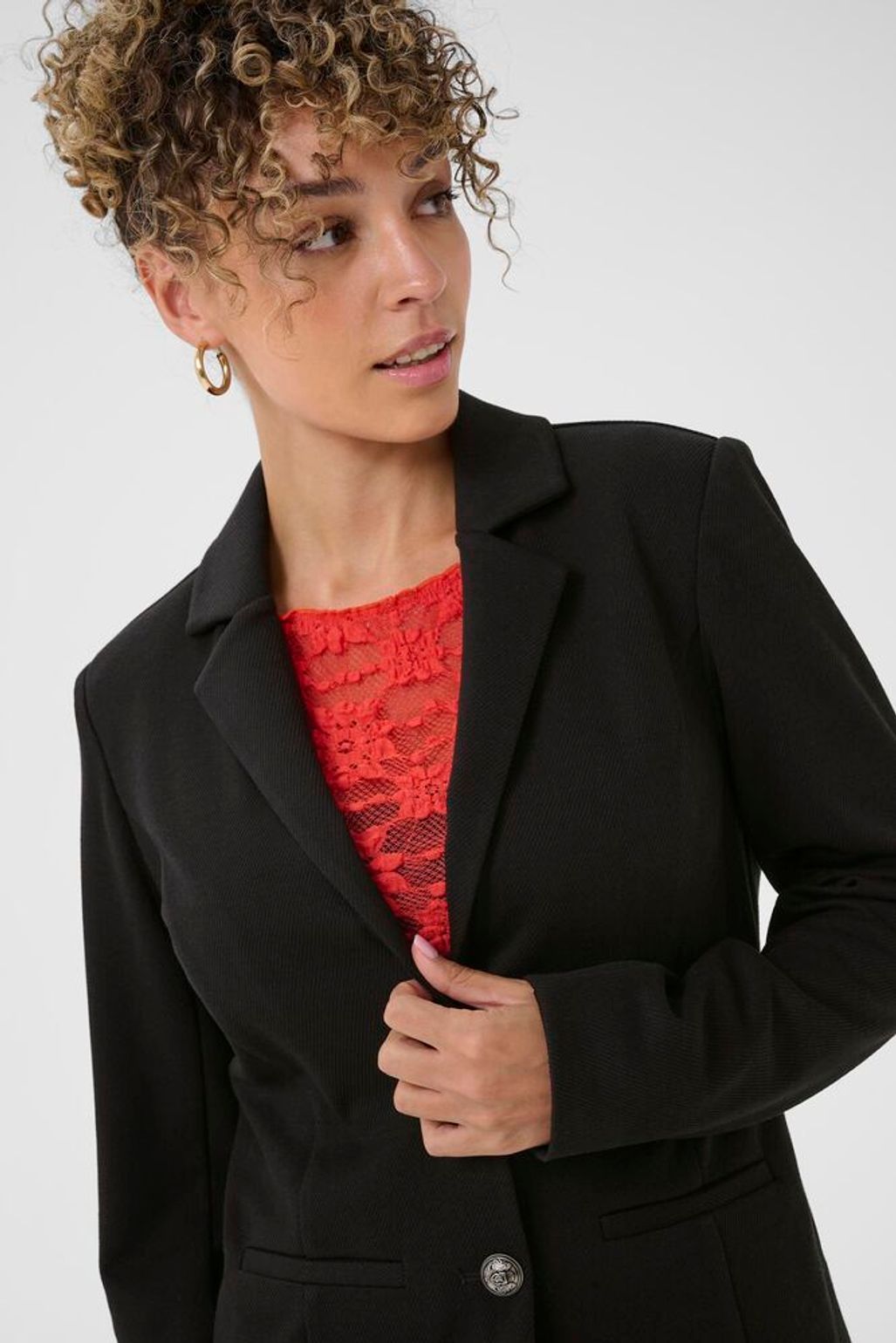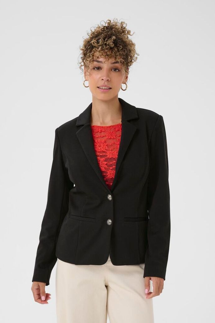 Elevate your wardrobe with our stretch black blazer, the timeless piece that transforms any outfit with polished sophistication. Crafted with a comfortable stretch fit and regular silhouette, this two-button blazer features classic lapels and a fully lined interior for a refined finish. At 23" in length, it hits at the perfect spot for versatile styling. Pair it effortlessly with denim for casual elegance, dress pants for professional polish, or throw it over a dress or skirt for instant impact. This wardrobe essential adapts to your lifestyle, delivering comfort and style whether you're heading to the office, out for dinner, or anywhere in between.